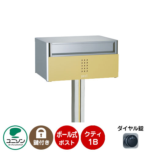 エントランスにポップな印象を与えるポストとポールのセット!郵便ポスト 郵便受け QUTI クティ1B +ポールセット (イメージ画像:サフランイエロー) ユニソン ポール式ポスト 鍵付き ダイヤル錠 おしゃれ クール シンプル 戸建て 玄関 庭 かわいい 宅配 新居 新築 エクステリア リフォーム お祝い プレゼント