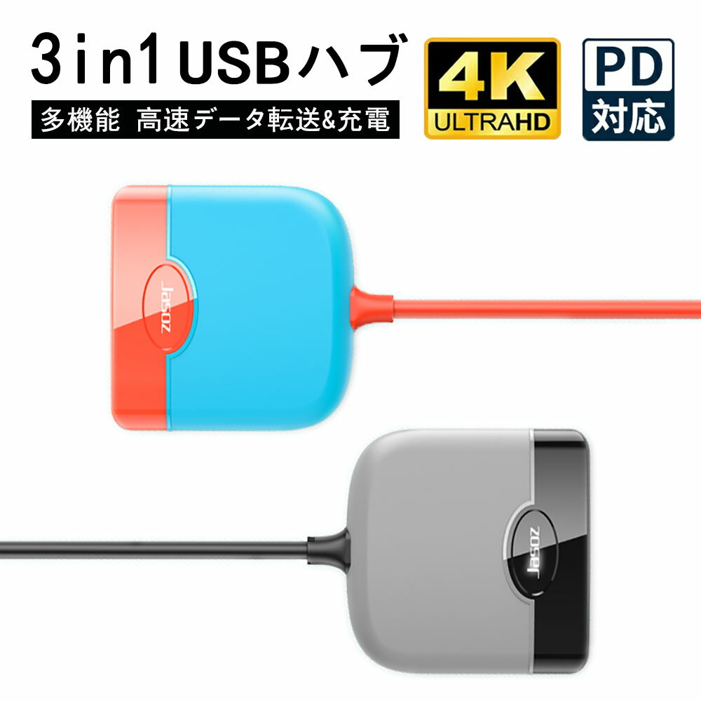 Switch ドック ハブ TYPE-C USB 3in1 変換アダプタ USB3.0 5Gbps 高速データ転送 PD急速充電 100W HDMI 4K 4.5mm TVモード【在庫一掃セール】Switch ハブ TYPE-C USB 3in1変換アダプタ USB3.0 TYPE-A 5Gbps Hub 高速データ転送 PD急速充電 100W HDMI 4K 30Hz USBポート オス メス 充電ケーブル 4.5mm usb type-c to usb-a スイッチ Macbook/Android/Nintendo Switch TypeC対応 PC スマホ