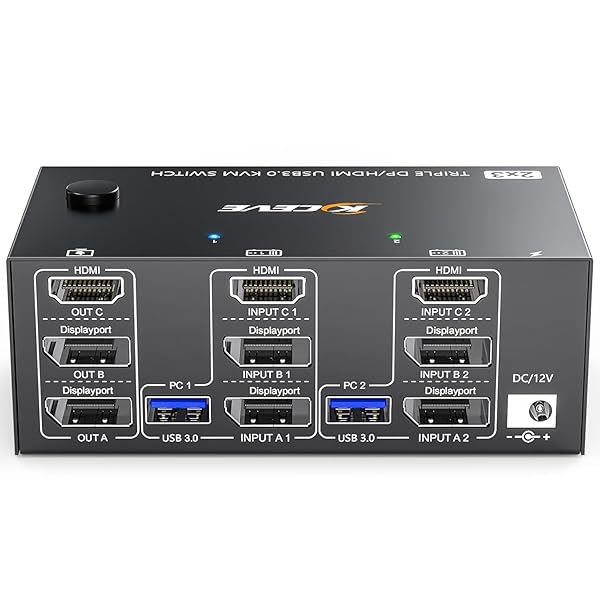 梱包サイズ:47.7cm 型番:NW-KVM203DH8K KVM切替器 2PC 3モニター、コピー/拡張モード HDMI+2DPポート(8K@60Hz/4k@144Hz) USB3.0ポート KVM Switch KVMスイッチ PC2台とディスプレイ3台対応 キーボード、マウスを2PCで共有 簡単に