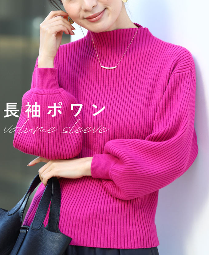 「CAWAII」2022AW【2L3Lのみ再入荷♪10/17 20時】(マゼンタ)(S~L/2L~3L対応)長袖ポワンとオフネックのニットトップス