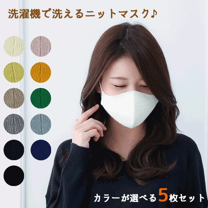 ゆうパケット発送のため代金引換はできません。【レビュー特典あり♪】カラーを選べる5枚セット ニット屋さんが作った洗濯機で洗えるニットマスク ファッションマスク ニットマスク