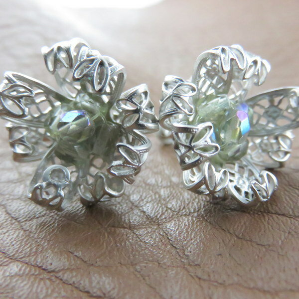 母の日アンティークな花に心奪われます。そのうえ、コーデの控えにもやさしいモノトーンなので便利に使えます。軽量。アンティーク レース風 フラワーのイヤリング★繊細で華奢な模様の花びらと、中央のグレー系のチェコ製ガラスがどこまでも上品な華やかさ!送料無料 レディースアクセサリー ネジばね式 イヤリング母の日 クリスマス