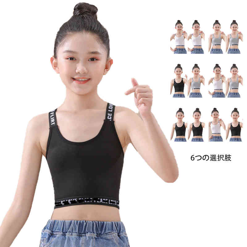 【スーパーSALE 全品ポイント20倍】新作 子供用 スポブラ 下着 綿混 小学生 中学生 黒 白 グレー スポーツブラ 女の子 人気 ハーフトップ ファーストブラ インナー キッズノンワイヤー 夏 おしゃれ かわいい ヨガ ダンス プール 伸縮性 メール便3枚まで 綿混素材の子供用ハーフトップブラ。綿混なので敏感肌や肌の弱いお子様も安心して着用。 綿混素材の子供用ハーフトップブラ 通気性がよく汗をかいても乾きやすいので体育やスポーツをするときにピッタリ! 綿混なので敏感肌や肌の弱いお子様も安心 体育やスポーツをするときにピッタリ! 日常でも使いやすいデザイン よく汗をかいても乾きやすい 体育やスポーツをするときにピッタリ! ファーストブラにも◎ 成長に伴ってバストが変化してきた女の子のインナーを導入期からサポートするブラです。運動シーンだけでなく、学校生活や日常生活を含め幅広いシーンでお使いいただけます。 翌日~3営業日以内で発送(土日祝除く)1
