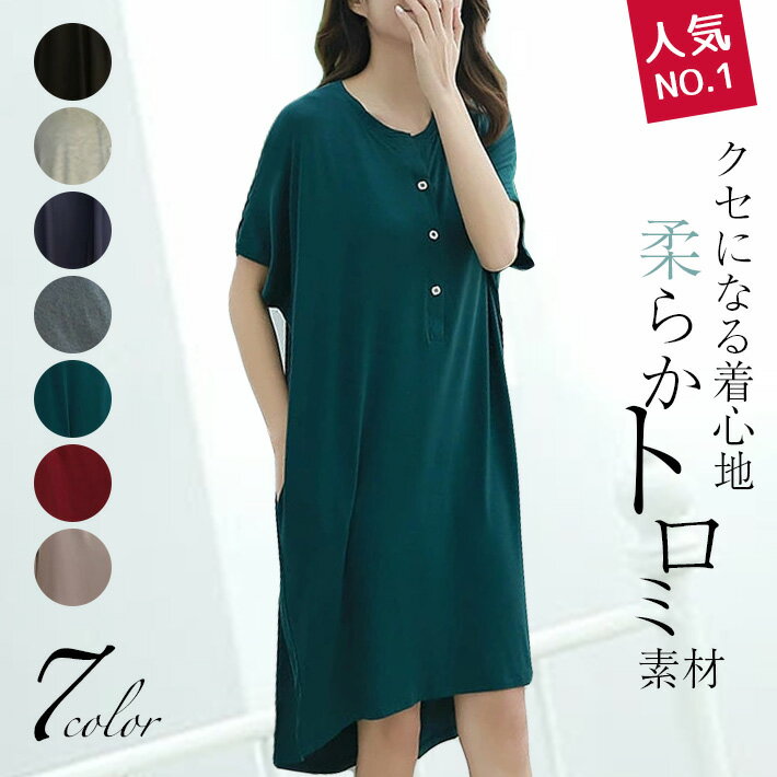 トロミのあるサラリとした肌触りが夏に心地良いゆったりロング丈&前開きなので授乳服やマタニティのトップスとしても◎ロング丈 Tシャツワンピース ロングTシャツ パジャマ【メール便で送料無料】【レビューを書いて10%OFFクーポンGET】トップス Tシャツ マタニティ 授乳服 ワンピース チュニック パジャマ ロング ロング丈 ロンT 前開き 膝丈 薄手 涼しい 冷感 とろみ カットソー ストレッチ ゆったり 大きいサイズ 半袖 春 夏 夏用 レディース