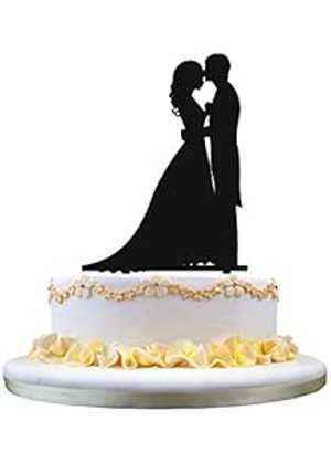 ウェディングケーキトッパー - 新郎新婦のケーキトッパー、花嫁にキスする新郎のシルエット、結婚記念日パーティーの装飾に最適 zhongfei Wedding Cake Topper - Bride and Groom Cake Topper, Silhouette of Groom Kissing Bride, Perfect for Weddin