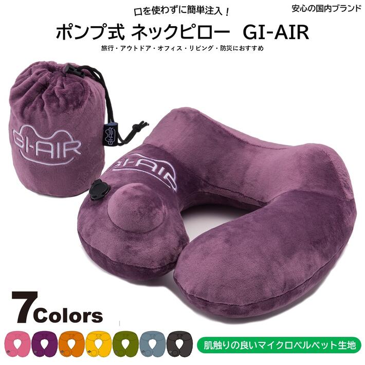 累計販売数15万個突破! TBS「ラヴィット」「王様のブランチ」等多数メディアでご紹介! いつでも、どこでも、快適。おしゃれに。安心国内ブランド (GI-AIR パープル) 上質 ポンプ式 空気 エアー ネックピロー 新幹線 飛行機 車 夜行 バス 旅行 トラベル 出張 アウトドア 防災 仮眠 リラックス 便利 快適 折り畳み 膨らます コンパクト ポーチ付 洗える おしゃれ 携帯枕 エアー枕 エアーピロー 首まくら