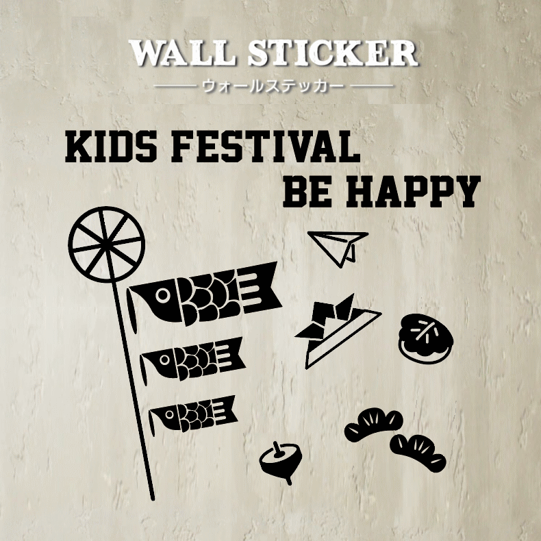 子供の日☆ シール式ウォールステッカー ウォールステッカー 飾り こどもの日 鯉のぼり こいのぼり 端午の節句 兜 菖蒲 ポール タペストリー 剥がせる カッティングシート wall sticker 雑貨 DIY ウォールステッカー▼子供の日 全ウォールステッカーはこちらから▼●対象の壁/壁紙の素材について ツルツルの壁や家電、少し凹凸のあるタイプの壁紙に適しています。 砂壁や土壁、防汚加工がされた高機能壁紙はとても剥がれやすい為、おすすめしません。●貼り直しについて 位置調整などは可能ですが、何度も貼り直すと徐々に粘着力が落ち、剥がれやすくなるため 基本的には部屋や場所を変えての貼り直しには対応しておりません。●カラーの見え方について 透明シートに印刷された商品ですので、白や淡色の壁でお楽しみ下さい。 黒や濃色の壁に貼りますと色が沈み、本来のデザインが表現されません。 また光が強く当たる場所のガラスに貼った場合、色が薄く透けて見える場合があります。●交換・返品について 画像はサンプルイメージですので、ご覧の環境によって色味に違いを感じる場合があります。 イメージ違い、モニターと色味が異なるという理由での交換や返金はご対応出来かねます。 受注生産品のため、不良品以外のご返品や交換は固くお断り致します。●配送について 完全受注生産商品となりますので、発送までお時間を頂いています。 基本的に決済確認後、順次発送致しますが、最大で10営業日程度での発送となります。 繁忙期や休業日明けなどでお時間がかかる場合は別途メールにてご連絡致します。