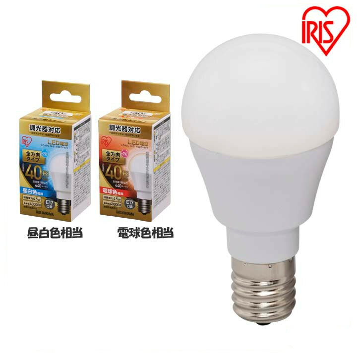 LED電球 E17 40W 調光器対応 電球色 昼白色 アイリスオーヤマ 全方向 LDA5N-G-/W/D-4V1・LDA5L-G-/W/D-4V1 密閉形器具対応 電球のみ おしゃれ 電球 17口金 形相当 LED 照明 長寿命 省エネ 節電 全方向タイプ ペンダントライト デザイン照明 玄関