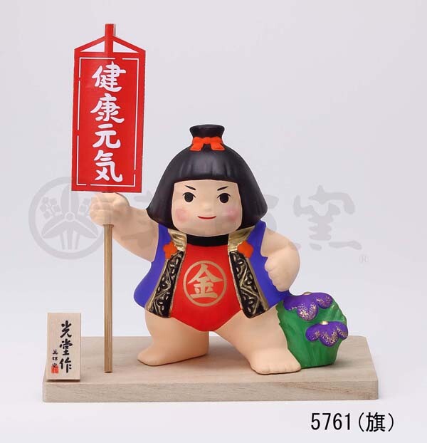 ★端午の節句★「置物とインテリア」 五月人形 【錦彩 健康元気金太郎(木台付)】