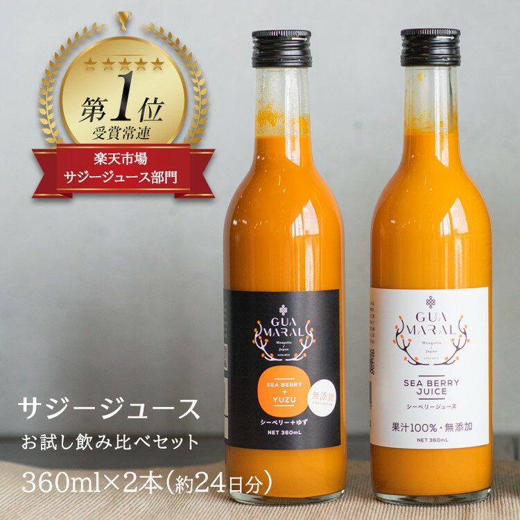 モンゴル国産サジー100%/ビタミンE栄養機能食品/着色剤・防腐剤・香料不使用【ふるさと納税】「サジー 100%」と「サジー+ゆず」ジュース 飲み比べ セット 360ml×各1本(計2本)|サジージュース 2種類の味 サジー シーベリー 沙棘 グアマラル 健康ドリンク 健康 美容 栄養 果汁 鉄分補給 栄養補給 ギフト 贈答 贈り物 プレゼント お祝 ご褒美 _DX01