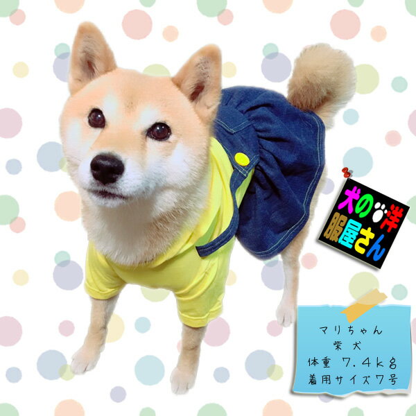 お買い得!値下げしました☆\本日P4倍+200円OFF/ 犬服 オールシーズン用 イエローシャツ&デニムワンピース ( 中型犬用 ) ペアルック可能 スカート