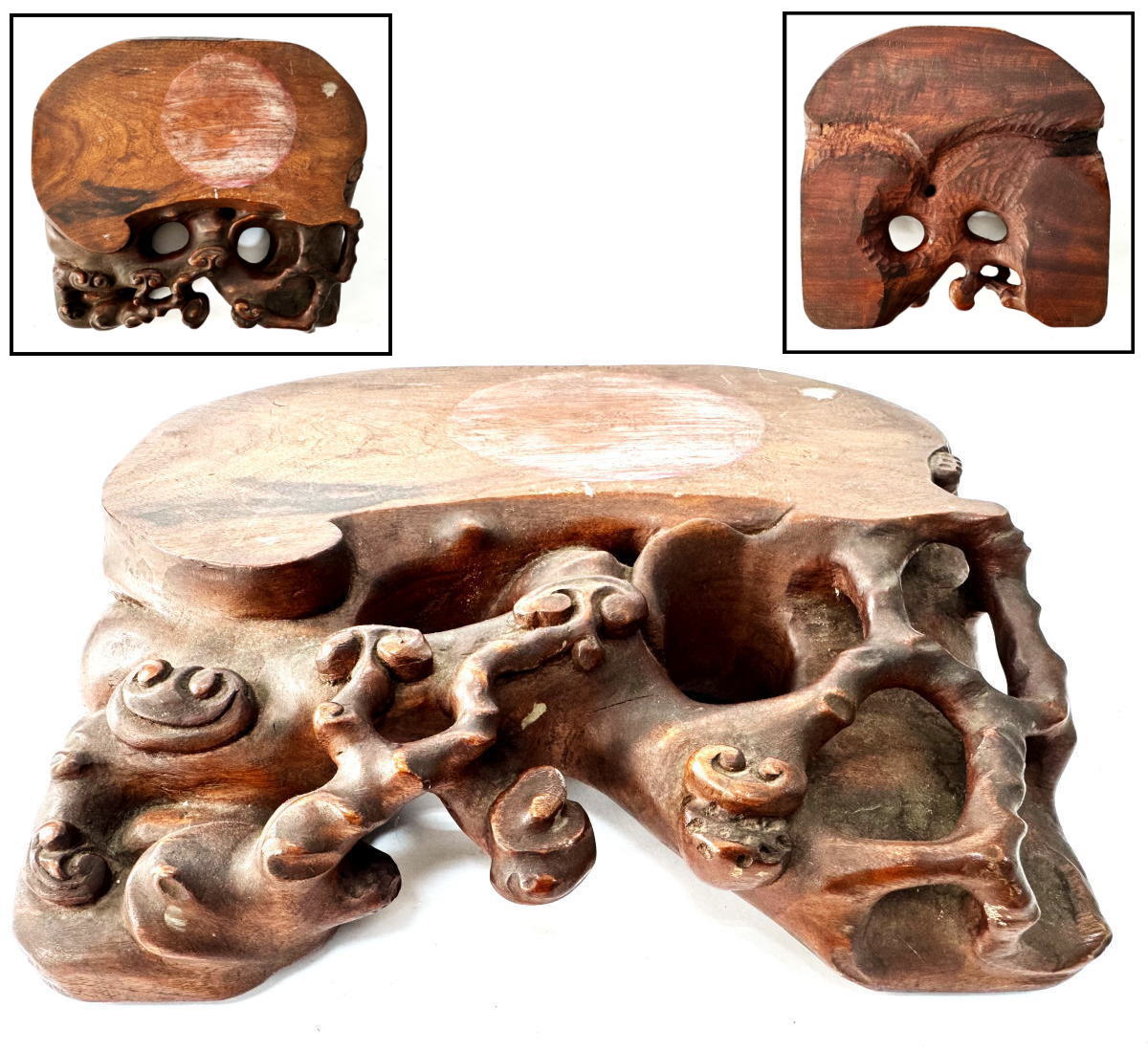旧家蔵出し¥ 一点物の年代物です!【送料無料】唐木透かし霊芝如意彫り花台約6.9kg 唐木 華道 茶道香炉台 飾台 花梨 唐物 盆栽台置物 (旧家蔵出し)威龍彩雲通販