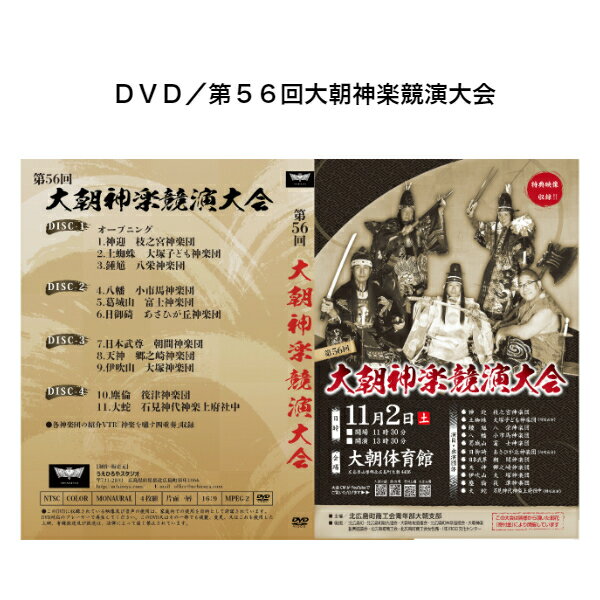 広島神楽 伝統芸能 大朝体育館 4枚組 映像 動画 神楽競演大会 神迎え 膝丸 土蜘蛛 鐘馗 八幡 葛城山 日御碕 日本武尊 天神 伊吹山 塵倫 大蛇DVD/第56回大朝神楽競演大会【送料無料】※注文後1週間前後のお届け※広島神楽 伝統芸能 大朝体育館 4枚組 映像 動画 神楽競演大会 神迎え 膝丸 土蜘蛛 鐘馗 八幡 葛城山 日御碕 日本武尊 天神 伊吹山 塵倫 大蛇