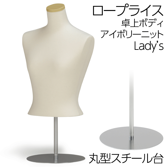 【卓上】アイボリーニット張で、お手頃価格のレディースロープライス上半身ボディ【送料無料♪お買い得商品!】卓上 レディースボディ 婦人 マネキン 軽量 トルソー 9号 腕なし 上半身 針ピン打ち可 アイボリーニット張 展示 ディスプレイ アパレル ショップ ウインドウ 店舗 ロープライス【BWZ1-90】