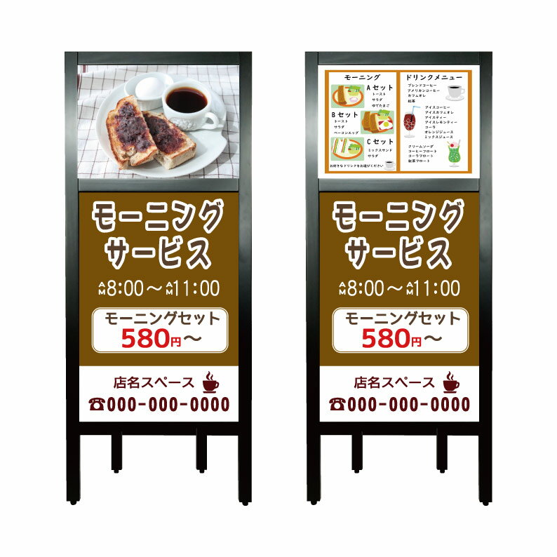 【モーニング 喫茶店 カフェ コーヒー カフェテリア 看板】営業中 OPEN 定休日 臨時休業 本日休業 本日終了 準備中 貸し切り 満席 黙食 飛沫防止 マスク着用 アルコール消毒 モーニング ランチ テイクアウト A型 立て看板 スタンド看板 案内看板 店舗用 自立 屋外 省スペース