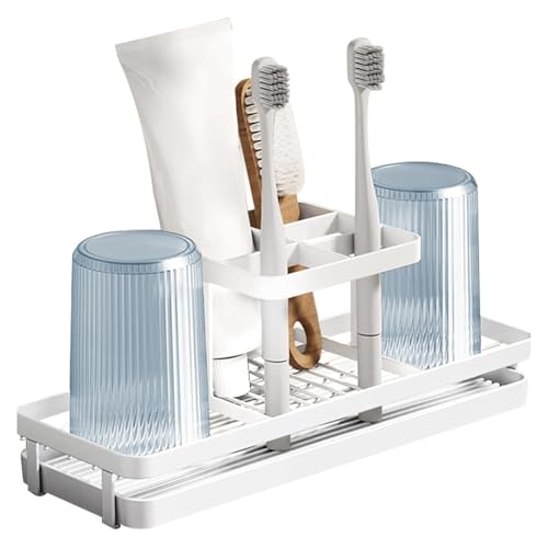 歯ブラシスタンド 置き型 防錆 歯ブラシホルダー 大容量 歯ブラシ立て 洗面台 壁掛け可能 歯ブラシ置き 水切り コップスタンド 歯磨き粉 コップ 収納 電動歯ブラシ シェーバー シェーバー 洗顔フォーム 多機能収納 洗面所(白)