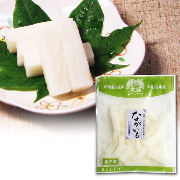 商品情報 商品名 わさび風味ながいも原材料名 ながいも、漬け原材料〔食塩、醸造酢、柿酢、砂糖混合ぶどう糖果糖液糖、香辛料〕/調味料(アミノ酸等)、酸味料、酸化防止剤(ビタミンC)原料原産地名 国産内容量 100g賞味期限 15日保存方法 要冷蔵(1℃~10℃)販売者 千枚漬本家 (株)大藤 005京都市中京区麩屋町通り錦小路下る桝屋町510栄養成分表示(100g当たり) エネルギー 110kcl タンパク質 4.4g 脂質 0.1g炭水化物 22.9g 食塩相当量 2.69g この表示値は、目安です。【わさび風味ながいも】ながいも わさびつけもの 漬物 京つけもの京都より 千枚漬本家大藤 ながいも浅漬けにわさびをぴっりと効かせました ワサビがキリッと ◆ お酒のお供にぴったり 鮮度の良い長芋のサクサクした食感に、ワサビの辛味が効いてます!お酒のお供にぴったりと、人気の一品。浅漬のお漬物です。冷蔵庫に保存の上、お早めにお召し上がりください。 鮮度のよい「ながいも」に、「わさび」を効かせました。 サクサクした歯ざわりとしっとりした粘りの浅漬を、 わさびの辛味が引き締めています。 そのままでも、刻んでアレンジを加えても。 ながいもには消化酵素が多いんですよ。 さくさくの歯ざわりの後、ツンッとわさびが抜けて あとくちさっぱり。 食事の締めや、お酒のお供にお奨めです。 浅漬のお漬物につき、到着後は冷蔵庫で保存の上、 新鮮な間にお召し上がりください。 2日~3営業日以内に発送します。 1
