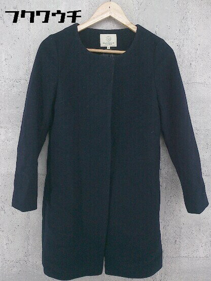 ■ BEAUTY&YOUTH UNITED ARROWS アンゴラ混 長袖 ノーカラーコート サイズS ネイビー レディース 【中古】