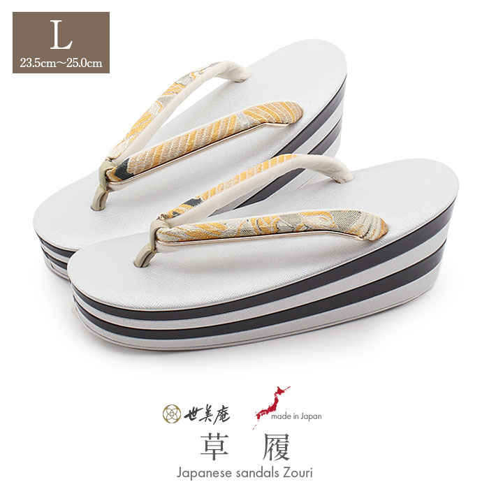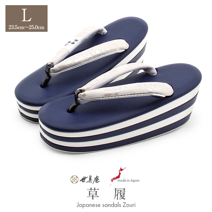 ≪在庫限り≫ 成人式や結婚式の華やかな振袖や卒業袴に合わせたい草履。人気の厚底タイプ。バイカラーがお洒落なデザイン。痛くなく歩きやすい、初めての方にも安心の履き心地。振袖草履 成人式 草履 振袖 ぞうり 成人用 レディース 世美庵 Lサイズ ネイビー ホワイト 白 銀 華紋 正絹帯地 合皮 4枚芯 厚底 ハイヒール バイカラー 日本製 優花緒 痛くない 歩きやすい 女性 振袖 卒業袴 振り袖 ママ振 おしゃれ はたち 結婚式 草履 fs