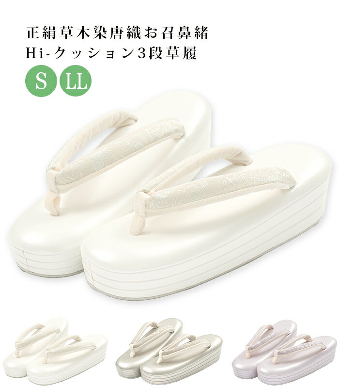 ハイクッション 低反発クッション 草履 ぞうり 履物 着物 歩きやすい 疲れにくい フォーマル セミフォーマル カジュアル都粋オリジナル 正絹草木染唐織お召生地使用 Hi-クッション3段草履 S LL レディース
