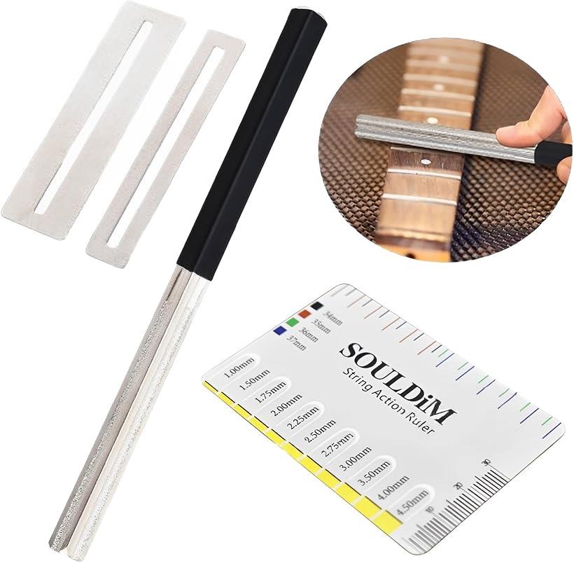 MIMIAギターメンテナンス セット ギターフレット ヤスリ 磨き 3サイズ フレットプレート 弦高定規 ストリングアクションルーラー 楽器道具 やすり