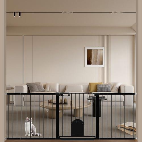 Fairy Baby ベビーゲート ペットゲート ペットドア付き 猫 犬 ゲート 高さ76cm ベビーフェンス 突っ張り式 ダブルロック 自動閉鎖 両開き扉 赤ちゃんゲート ベビーガード 玄関 階段 拡張フレーム付き(ブラック、取付幅201-208cm)