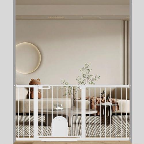 Fairy Baby ベビーゲート ペットゲート ペットドア付き 猫 犬 ゲート 高さ76cm ベビーフェンス 突っ張り式 ダブルロック 自動閉鎖 両開き扉 赤ちゃんゲート ベビーガード 玄関 階段 拡張フレーム付き(ホワイト、取付幅131-159cm)