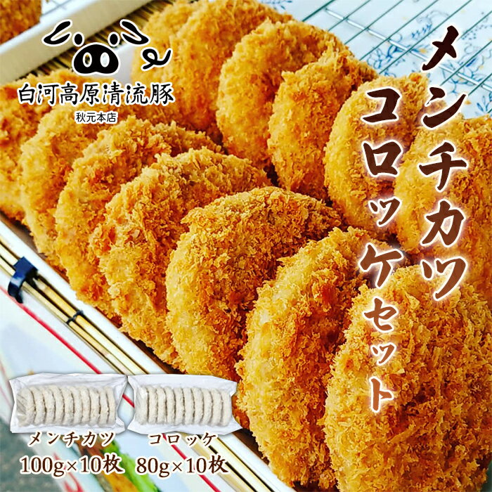 白河高原清流豚を使用したジューシーメンチカツと国産野菜を使用したホクホクコロッケ。おかずに悩んだときに揚げるだけ簡単!!【ふるさと納税】白河高原清流豚メンチカツ・コロッケセット 各10枚 合計20枚 F21R-041
