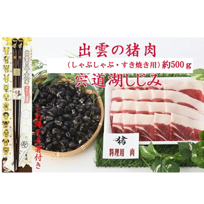 出雲地方で捕獲された猪肉を食べやすくスライス。「しめ縄干支箸」を進呈【ふるさと納税】出雲の猪肉 (しゃぶしゃぶ用)と宍道湖しじみ、しめ縄干支箸付 | 肉 お肉 お鍋 いのしし 蜆 貝 kai cai 詰合せ セット お取り寄せ グルメ 島根県 出雲市