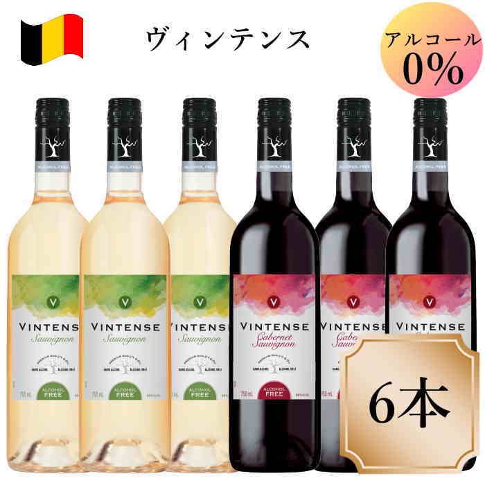 カロリー約1/3 ポリフェノール たっぷり ダイエット 中の方にも オススメ ノンアルコール ワインヴィンテンス ベルギー ネオブュル社 ノンアルコールワイン 6本セット 750ml ノンアルワイン