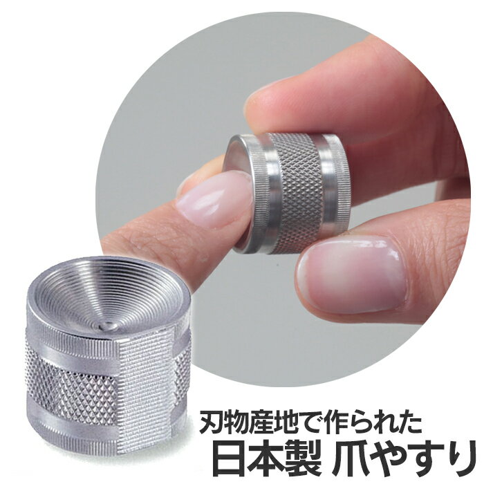 【定形外郵送料無料】箱なしの商品です!! テレビを見ながらでも爪が磨ける! 刃物の町、岐阜県関市で作られたこだわりの爪やすりです。 今までに無かったすり鉢型!爪の表面・裏面も磨ぎ上げます。 ■刃物産地で有名な岐阜県関市の刃物メーカー足立工業株式会社で製造。 ■従来の爪やすりのように「削り角度」を気にする必要はありません。 ■爪の先端に当ててクルクル回すだけ。 ■荒削り面と仕上げ削り面を使い分けて滑らかな仕上がりに。 ■縁を使えば爪の裏まで磨くことのできる優れものです。 ■側面についたギザギザ面で爪の長さ調節も可能。 爪へのダメージ軽減や深爪防止にも効果的です。 ●サイズ:直径1.82cm×高さ1.5cm ●重量:約22.5g ●材質:ステンレス鋼材(SUS303) ●製造国:日本(岐阜県関市 足立工業株式会社) *注意【代引決済・後払い決済の場合は宅配便発送の為、ご注文金額によっては別途配送料を加算させていただきます。 その場合料金を訂正し御注文サンクスメールでお知らせしますので、必ずご確認ください。】【定形外郵送料無料】箱なしの商品です!!