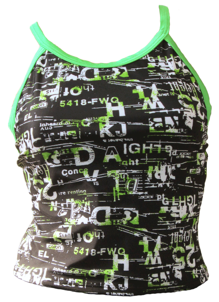 激しい動きにジャストフィット!バッククロスタイプフィットネストップス 柄 ブラック×グリーン フィットネスウェア レディース テニス ジョギング フィットネス ヨガ 水着用としても使えます スポーツ用トップス 日本製
