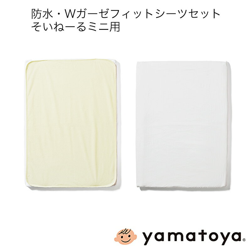 そいねーるシリーズ第四弾のそいねーるミニ用防水・Wガーゼフィットシーツ計2点セットです。赤ちゃんの快適な睡眠環境づくりに最適です。防水・Wガーゼフィットシーツセット そいねーるミニ用 計2点セット そいねーるシリーズ 大和屋 yamatoya 子供ベッド用品 yamatoya認定店