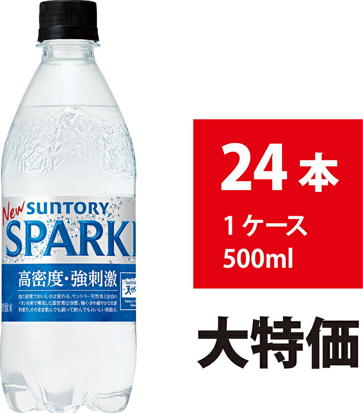 サントリー 天然水 SPARKLING スパークリング 500ml 24本 強炭酸水 炭酸水 旧ザストロング 強刺激 ミネラルウォーター ペットボトル サントリー天然水×独自のミネラル設計による「高密度・強刺激」な強炭酸水 500ml 24本旧「ザストロング」リニューアル品サントリー天然水×独自のミネラル設計による「高密度・強刺激」な強炭酸水!清冽なおいしさのサントリー天然水を使用しております。天然水史上最高レベルのガス圧の強炭酸に加えて、独自のミネラル調整により、大量のきめ細かい泡が喉に流れ込む爽快な強刺激を実現。ミネラル量の調整により、割元の酒の香りを引き立てて美味しくする、直接飲んでも割って飲んでもおいしい強炭酸水。仕事中や家事の合間のリフレッシュシーン、お風呂上りなどスカッしたい水分補給シーン、お酒の割材シーンなどでどうぞ。原材料・成分ナチュラルミネラルウォーター/炭酸、炭酸K、塩化K、硫酸Mg 5