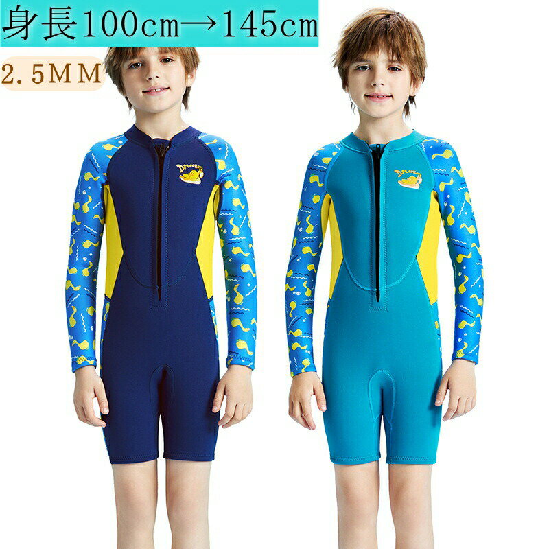 MORGEN SKY ウェットスーツ キッズ 水着 2.5mm 子供用 フルスーツ ラッシュガード マリンスポーツ ダイビング 水遊び 長袖 長ズボン 防寒保温 日焼け止め 男の子 女の子 上下一体 1905