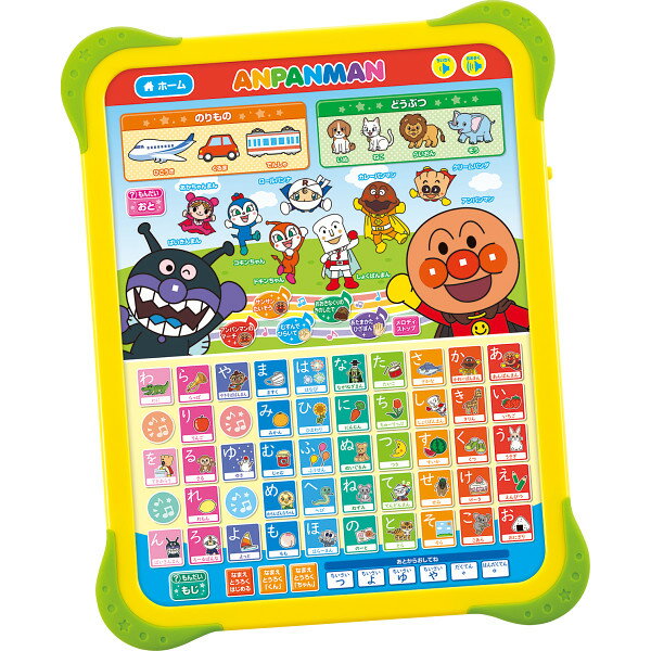 迷ったら?まずはギフト診断!▼ ●こちらの商品は【宅配商品】のため、デジタルメッセージには対応しておりません。 SNSですぐに贈れる【e-Gift】はこちらからどうぞ>>> 【商品について】タッチで簡単に遊びながら「あいうえお」のお勉強ができ、うた入りのメロディも楽しめるキッズタブレットです。 お子様に身近な動物の鳴き声と乗り物の音、アンパンマンと仲間たちのおしゃべりでお子様の興味を惹きます。●商品内容:セット内容=本体、取扱説明書・単4アルカリ電池×3本(別売)・対象年齢:1歳6ヶ月から・ST合格品・製造元:株式会社アガツマ●箱サイズ(cm):25×5×30●宅配時の状態:常温●二重包装対応:可※パッケージデザイン等は変更になる場合がございます。 【ご留意】 ●複数の商品をご注文頂いた場合、同時のご注文でも、商品により到着日が異なることがございます。 ●お熨斗は「ご自宅届け」「複数ご注文」「仏事利用」の場合は【外熨斗】でお届けしております。 上記のご用途で【内熨斗】をご希望の場合は、備考欄にてご指示をお願いいたします。 商品によっては【内熨斗】のご指定ができないものもございます。予めご了承ください。 出産祝いにもぴったり♪「子供向けおもちゃ」はこちらから>>> ●お届け日が「仏滅」にあたる場合がございます。「仏滅」を避けてお届けをご希望の場合には、お届け日をご指定いただくか、備考欄へご指示をお願いいたします。 ●お届け先ご住所の入力間違いや、お届け先様長期ご不在等の理由で、お品物をお届けできず、運送会社での保管期間を過ぎた場合は、お品物はご注文者様へ自動転送となります。 ●当店では請求書や納品書など、金額の分かる伝票はお品物に同梱しておりません。何卒ご安心下さい。 ●こちらの商品は、運賃、メッセージカード、のし、ラッピング、梱包資材、運送事故紛失補償などが含まれたパッケージ価格となっております。 ●ご注文のタイミングにより、注文確定後に在庫切れとなる場合がございます。予めご了承下さい。 ●商品リニューアルに伴いパッケージの改訂に加え内容量等の変更が生じる場合がございます。 ◇◆ 価格から商品を探すにはこちら ◇◆ =================== ¥3,000までの商品 =================== ¥3,000から¥5,000の商品 =================== ¥5,000から¥10,000の商品 =================== ¥10,000以上の商品 =================== 他にもいろいろ♪出産内祝いギフト▼ 内祝いで人気の名入れプリンギフトはこちらから▼ 平日正午、土日祝9時までのご注文で即日出荷!"最強配送"商品▼ 贈り物に喜ばれる千疋屋ギフト▼ ■さまざまなギフトアイテムをご用意しております。 内祝 内祝い お祝い返し ウェディングギフト ブライダルギフト 引き出物 引出物 結婚式 結婚祝い 結婚引き出物 結婚引出物 結婚内祝い 出産内祝い 命名内祝い 入園内祝い 入学内祝い 卒園内祝い 卒業内祝い 就職内祝い 新築内祝い 引越し内祝い 快気内祝い 開店内祝い ギフト ギフトセット セット カタログ カタログギフト カタログタイプギフト カタログ式ギフト ギフトカタログ グルメカタログ セレクトギフト 詰め合わせ 贈答品 お返し お礼 御礼 ごあいさつ ご挨拶 御挨拶 プレゼント お見舞い お見舞御礼 お餞別 引越し 引越しご挨拶 二次会 披露宴 お祝い 御祝 出産祝い 初節句 七五三 入園祝い 入学祝い 卒園祝い 卒業祝い 成人式 就職祝い 昇進祝い 新築祝い 上棟祝い 引っ越し祝い 引越し祝い 開店祝い 退職祝い 快気祝い 全快祝い 初老祝い 還暦祝い 古稀祝い 喜寿祝い 傘寿祝い 米寿祝い 卒寿祝い 白寿祝い 長寿祝い 金婚式 銀婚式 ダイヤモンド婚式 結婚記念日 記念日 誕生日 父の日 母の日 敬老の日 記念品 卒業記念品 定年退職記念品 ゴルフコンペ コンペ景品 景品 賞品 粗品 お香典返し 香典返し 志 満中陰志 弔事 会葬御礼 法要 法要引き出物 法要引出物 法事 法事引き出物 法事引出物 忌明け 四十九日 七七日忌明け志 一周忌 三回忌 回忌法要 偲び草 粗供養 初盆 供物 お供え お中元 御中元 お歳暮 御歳暮 お年賀 御年賀 残暑見舞い 年始挨拶 今治タオル グルメギフト メモリアルギフト リンベル 人気 老舗 話題 のし無料 メッセージカード無料 ラッピング無料 手提げ袋無料 大量注文【限定配布中!】▼お得なクーポンはこちらから▼ ◆お祝いに人気の商品を取り揃えております。 結婚 出産 お礼 お祝い お返し 退職祝い 定年 贈り物 母親 おばあちゃん 父 両親 女性 男性 友達 人気 オシャレ 花 お菓子 スイーツ 食べ物 30代 40代 50代 60代 70代 古希祝い 喜寿祝い 傘寿祝い 米寿祝い 本州 送料無料 オシャレ フラワー アレンジメント gift present flower sweets