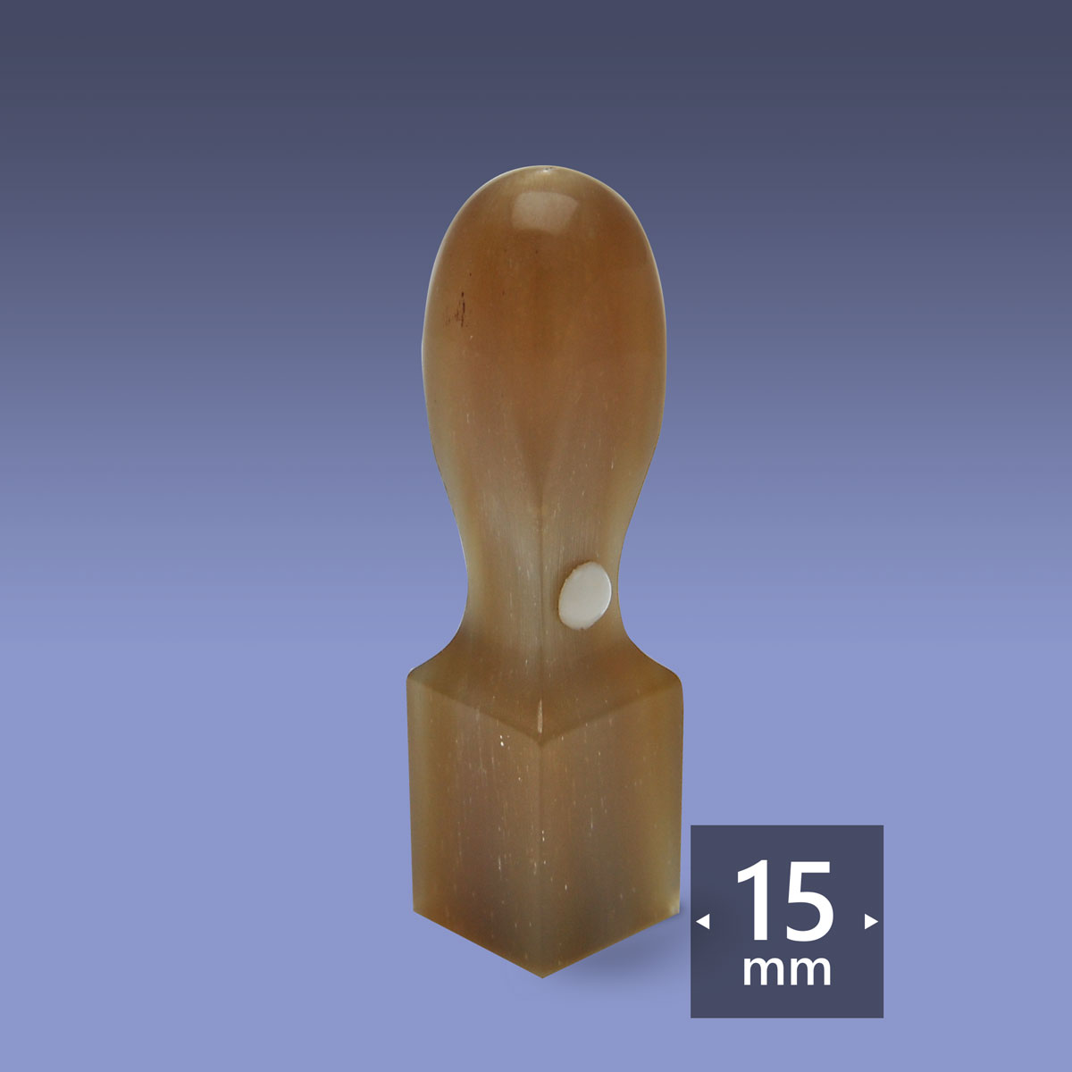 osj-k150-shi ■印材説明 東南アジアなどに広く分布する水牛の角を加工した印材です。 その昔、原産国がオランダの植民地であったため、慣用的にオランダ水牛と呼ぶ名残が残っています。総合的には一番実用的な印材です。当店では、ひび割れなど狂いの少ない角の中心の芯持ちと言われる材料のみを取り扱っております。芯持ちは耐久性に優れ、一本の角から一本しか取れませんので印材の値段が高くなりますが、他の部位を使用すると、歪みが出たり、ニューと呼ばれるヒビが深く入ったります。また、この印材は磨耗も少なく、粘りがあり、朱肉の油に強く欠けにいです。当店では黒や茶色の縞模様が5%から20%入っているものを「オランダ水牛 色上」として販売しています。世界に1つだけの上品なオリジナル印材ならコレ!