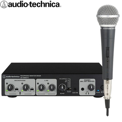 有線のダイナミックマイク付き カラオケミキサーセットaudio-technica マイクミキサー 有線マイク付き (ヘッドフォン出力・エコー機能付き)