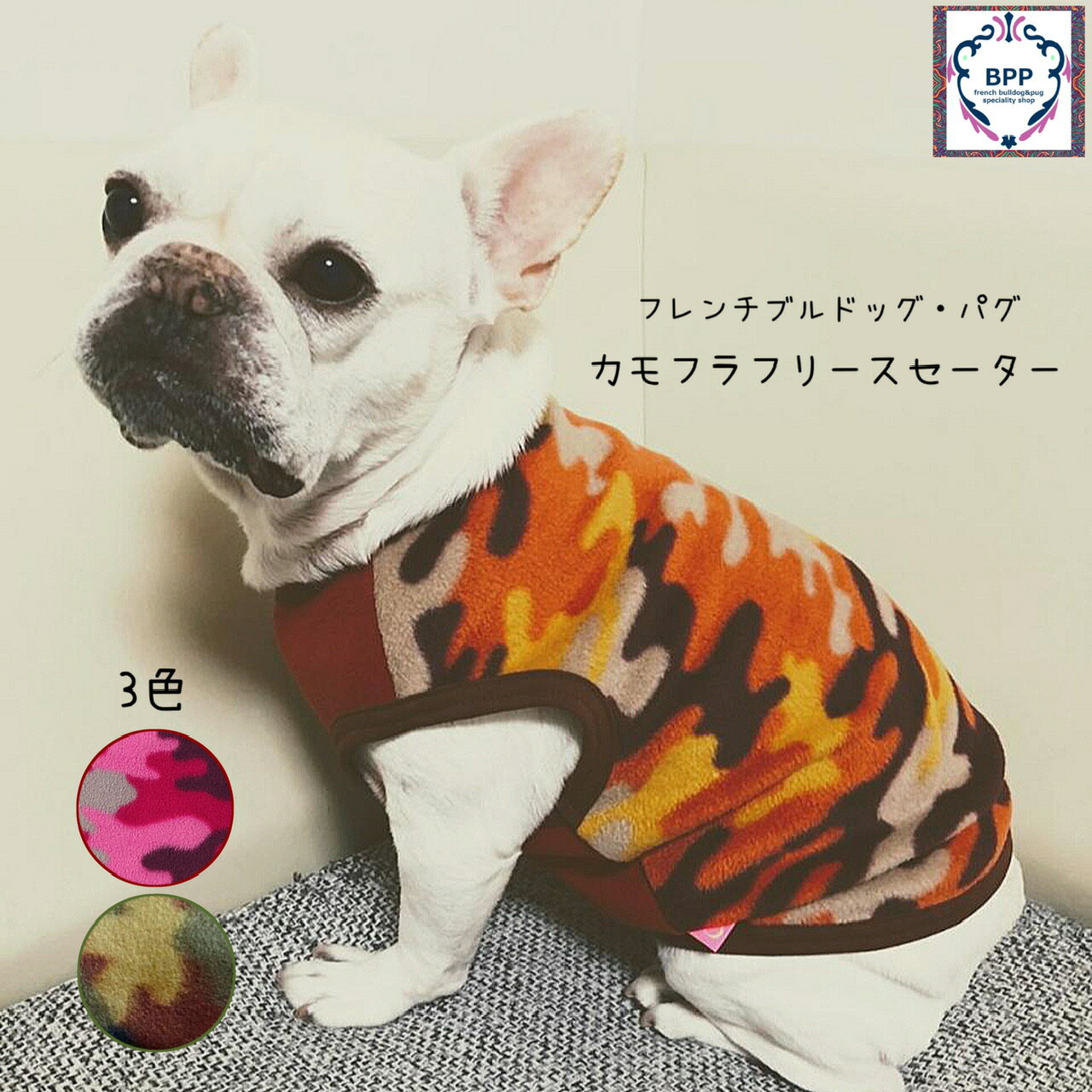 フレブル・パグ F3S~FL 5サイズBPP☆フレンチブルドッグパグ カモフラフリースセーター