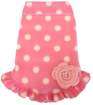 (1万円以上のお買い上げで送料無料)★I See Spot/アイシースポット★PIINK WHITE Fleece Pullover Dress W/Flower 犬用薄手フリース