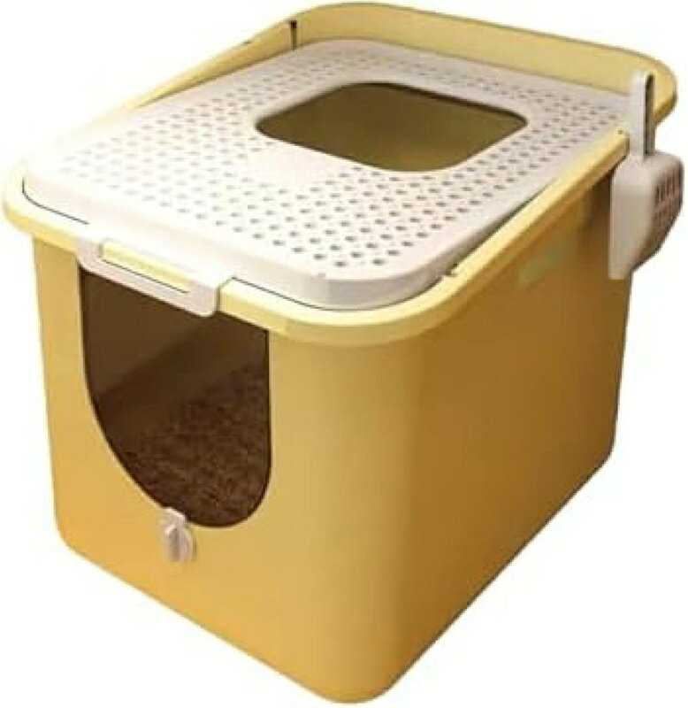 大型猫トイレ オープンタイプ 猫用トイレ本体 大きめ 深め 猫のトイレ 広々サイズ ゆったり 砂飛び散り防止 大開口 スコップ付き 大きな猫のトイレ ペットトイレ 掃除簡単 階段付き お手入れ簡単 多