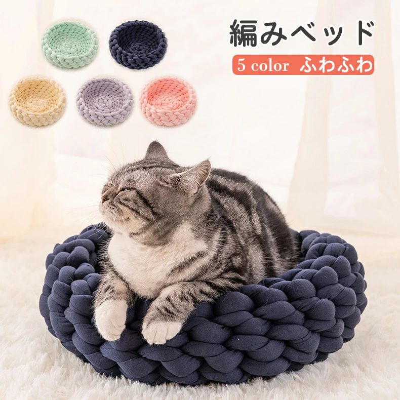 編み型猫ベッド ペットベッド 35cm/45cm/50cm かわいい カドラー送料無料 猫用 洗えるベッド インスタ映え 編みベッド 子猫子犬 寝床 クーション ベッド 室内用 保温防寒 冬 夏用ベッド ト用品
