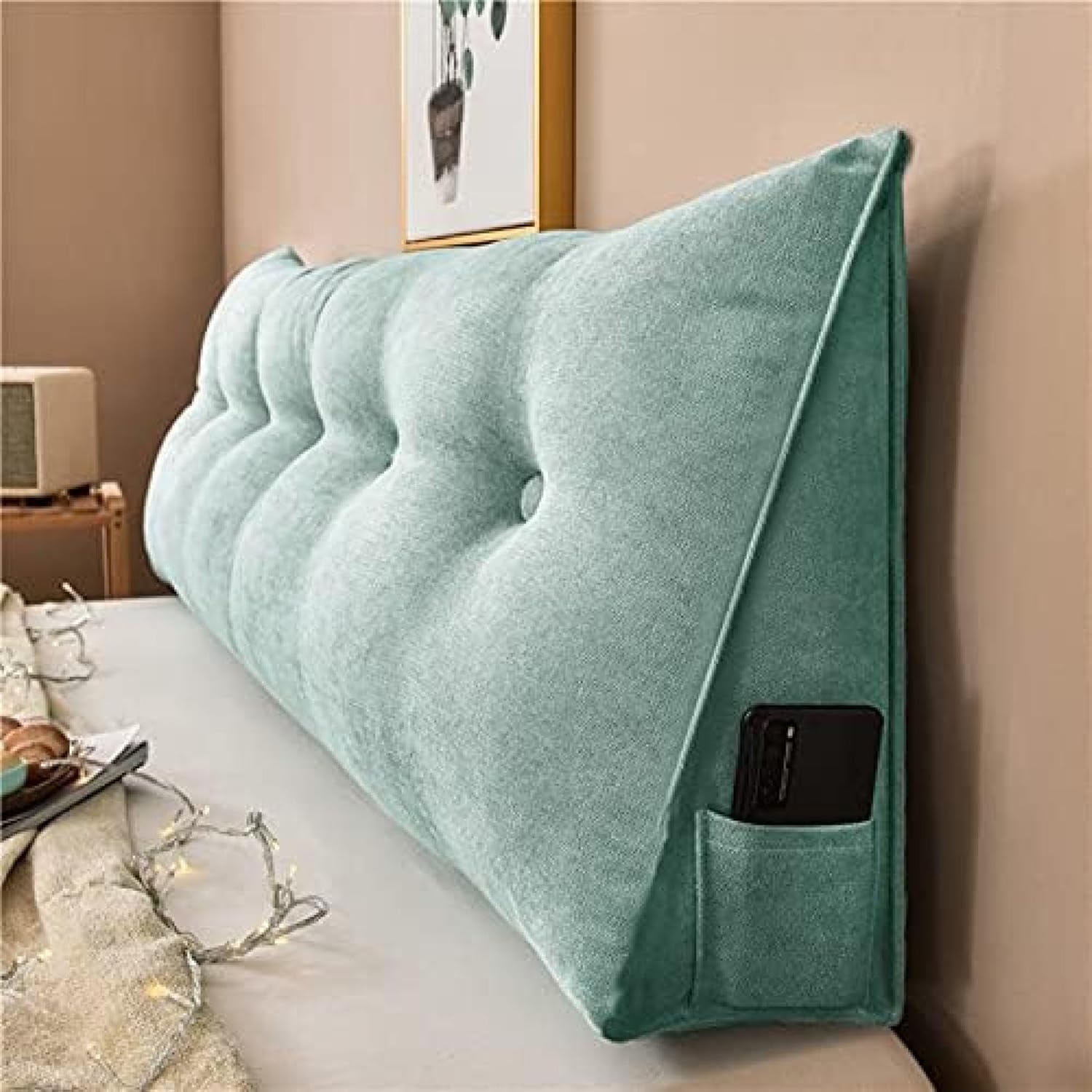 【20%OFFクーポン】大きい 背もたれクッション ウェッジ枕 三角 ヘッドボードクッション 耐久性 シートクッション 背もたれ位置サポートベッド 読書枕 パッド ソリッド腰クッション グリーン 150*50cm 背もたれ