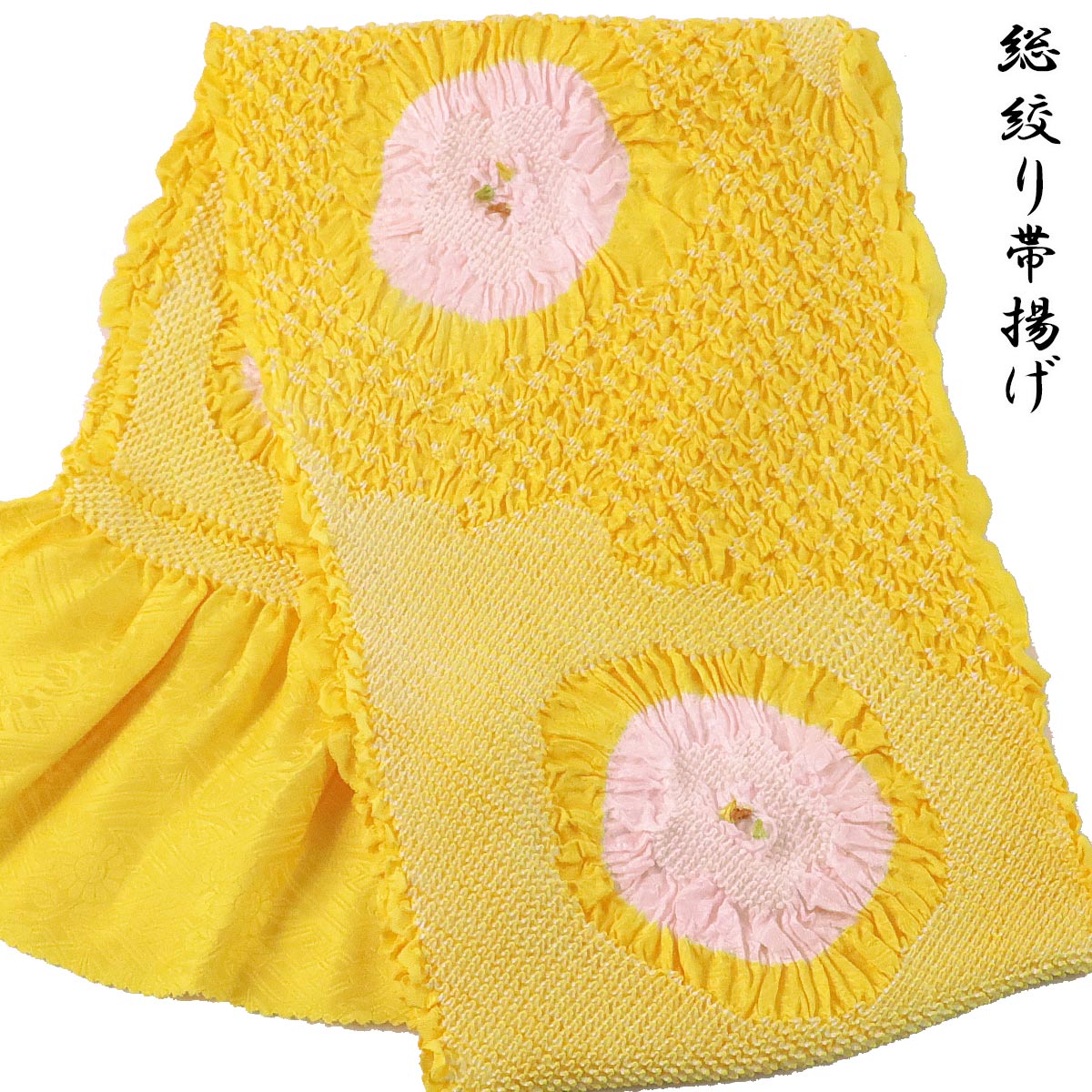 豪華な帯あげです!送料無料♪【成人式・卒業式・結婚式】【振袖用帯揚げ】高級正絹総絞り帯揚げ「流れ梅(黄色)」