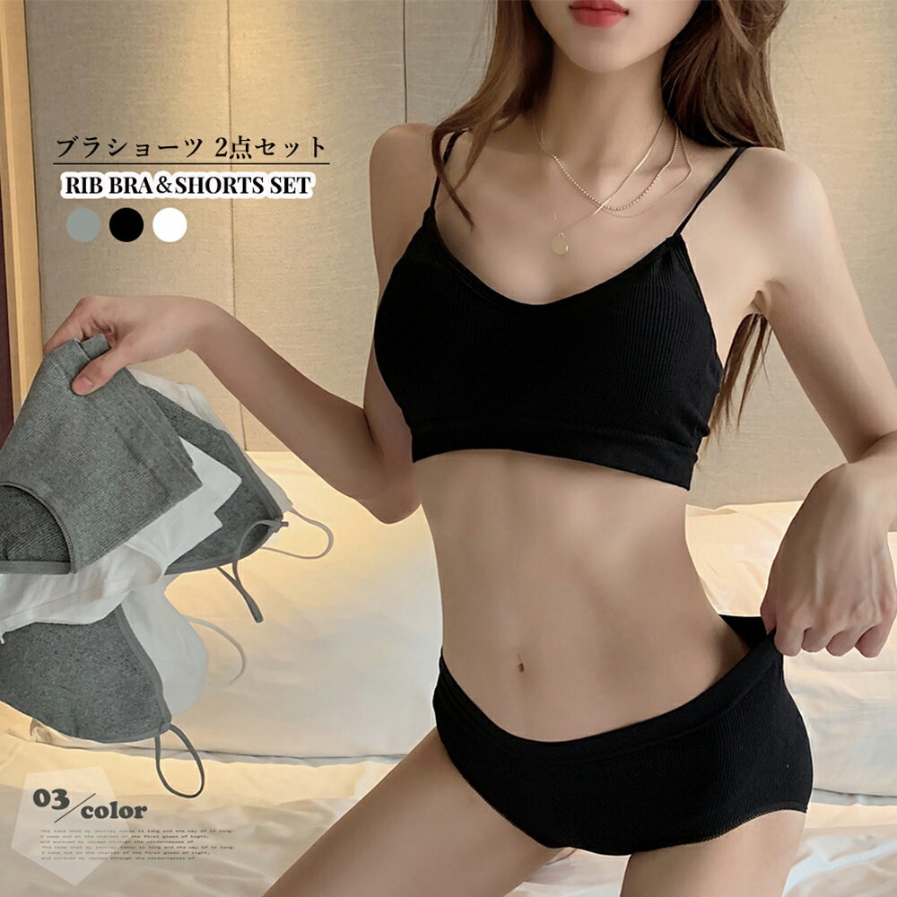 「500円割引レビュークーポン」リブ素材 ブラショーツ 2点セット 黒リブ素材 ブラショーツ 2点セット 黒(T)