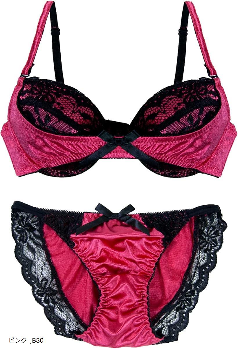 Chica Hurraレディース ブラ ブラジャー ショーツ 上下セット セクシー サテン レース 女性 下着(パープル, E80)