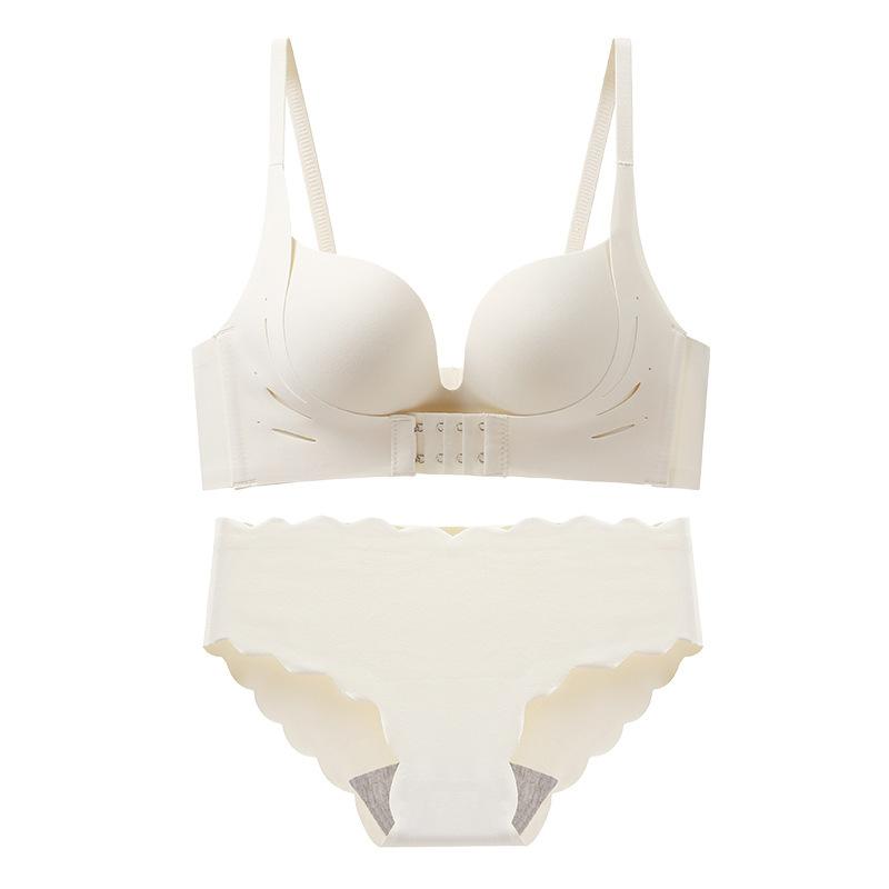 【予約販売5~12営業日での発送】ブラジャー レディース ノンワイヤー シームレス フロントホック 寄せ上げ ボリュームアップ 小胸さん向け 厚手モールドカップ 盛れる 快適 ホールド 綿 コットン 3/4カップ ショーツ 上下セット 脇肉スッキリ 補正下着 通気性 フェミニン