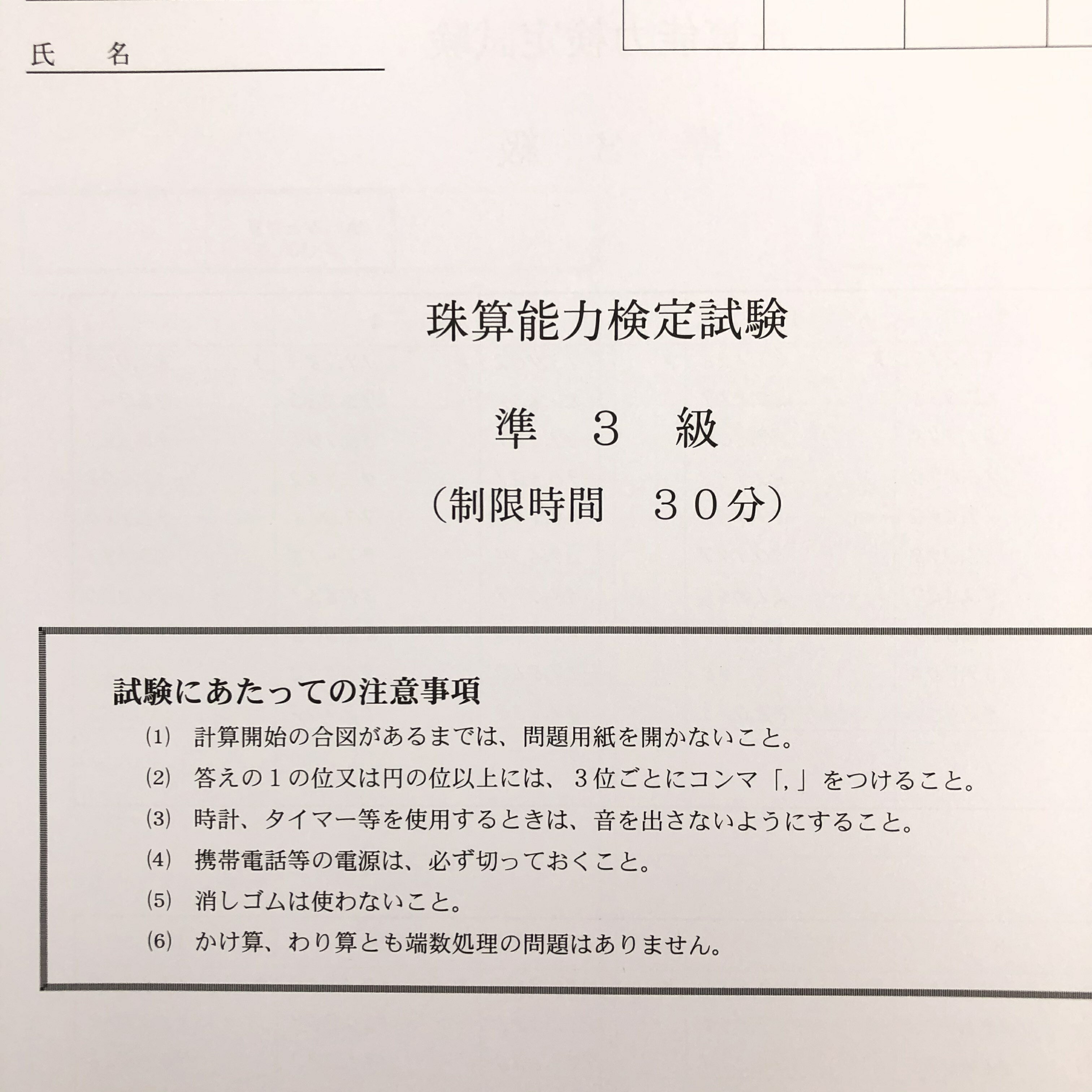 全国オンライン珠算模擬試験 珠算準3級 ※【準3級】です ご利用の流れ 1.ご希望の全国オンライン模擬試験を申し込みます。 2.お支払い完了後、全国オンライン模擬試験の資料が届きます。 (全国オンライン模擬試験用のID。パスワードも届きます。) 3.全国オンライン模擬試験当日 先生の合図に合わせて 全国の受験者と一斉に取り組みます。 4.試験用紙を返信用封筒に入れ郵送します。 ---元気そろばん教室にて採点結果を郵送します。 5.全国オンライン模擬試験の採点結果を受け取ります。 (提出した答案用紙に一言アドバイスを付けてお返しします) こんな時に 「検定を受けるか見送るかの判断を付けたい。」 「練習の成果を確かめるため」 「士気を高めるため」・・・ それぞれの思いがあると思います。 模擬試験で検定を受けるように、 お家で、先生の掛け声で、一斉に模擬試験を受けましょう こんな良い事が 「試験会場に出かけなくて良い」 「交通にかかる時間、待ち時間を取らなくて良い」 「自宅で取り組める」 「大勢で集まる必要が無い」 「一人じゃない、みんなが取り組んでいる様子が分かる」 「【元気そろばん教室】の先生の掛け声で一斉に始める」 「みんなで取り組んでる感じがする」 「次の検定までのモチベーションを上げる」 「お稽古の成果を確認できる」 などなど 配送方法のご案内 ~詳しい送料は お買い物ガイド・配送について をご覧くださいませ。~ お願い・注意事項 必ず守っていただきたいこと 全国の皆さんとオンラインでつながっております。 カメラはなるべく顔を写さないように、お手元を写してください。 zoomの録画はしないでください 他の機器を使った画面の録画や写真撮影は一切禁止です。 SNS等に不本意な流出を避けるためです。厳守願います。