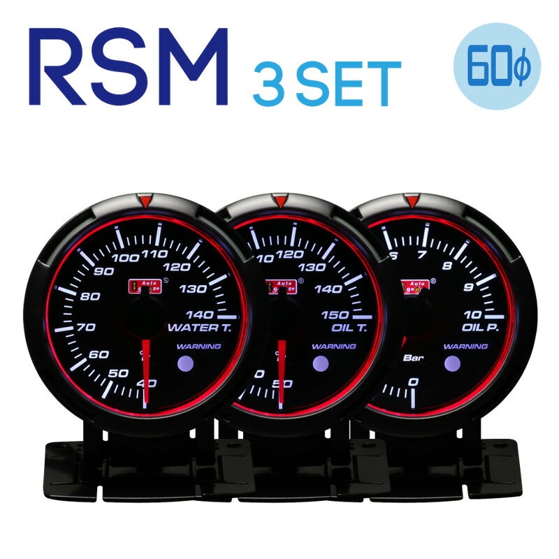 autogauge メーターセット 追加メーター 3点セット 水温 油温 油圧 セット RSMシリーズ 計器 60パイ メーター センサー付き エンジン管理 チューニングパーツ deporacing PROSPORT【3点セット】オートゲージ 追加メーター 水温計 油温計 油圧計 RSMシリーズ 60Φ センサー付き エンジン管理 チューニング用 セット Autogauge deporacing デポレーシング PROSPORT プロスポーツ 「RSM60/3点」