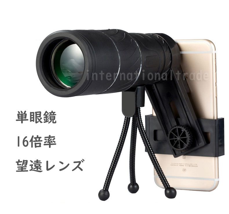 スマートフォンに取り付け可能♪スポーツ観戦、アウトドア、天体観測などで大活躍!1つあると色んなシーンで活躍するアイテム。荷物を軽くしたい登山や旅行でも威力を発揮します予約 単眼鏡 16倍率望遠レンズ スマホ三脚付き 高倍率 明るい視界 見やすい 高解像度 スポーツ観戦 野外イベント 旅行 自然観察 バードウォッチング ハイキング 登山 望遠レンズ スマホ対応 揺れ防止 コンパクトで軽量 持ち運び便利
